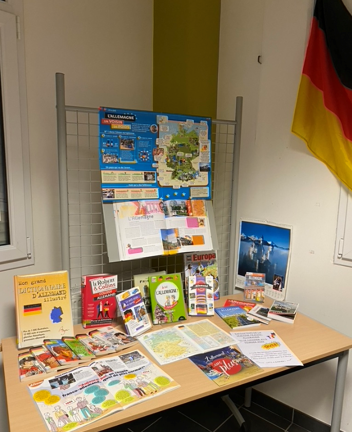 Une exposition du CDI a été réalisée par le professeur documentaliste avec des ouvrages sur l’Allemagne, Berlin et autres villes allemandes ainsi que des romans d’auteurs allemands. Un quiz est à la disposition des élèves pour apprendre des faits culturels. Il y a des lots à gagner !