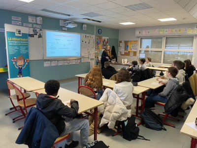 Le mardi 20 janvier, Michelle, animatrice de la Mobiklasse, est venue au Collège pour présenter l’allemand à deux classes de 6ème et Alina, la volontaire européenne du Conseil départemental est venue parler des traditions et des opportunités de mobilité avec deux classes d’élèves germanistes.